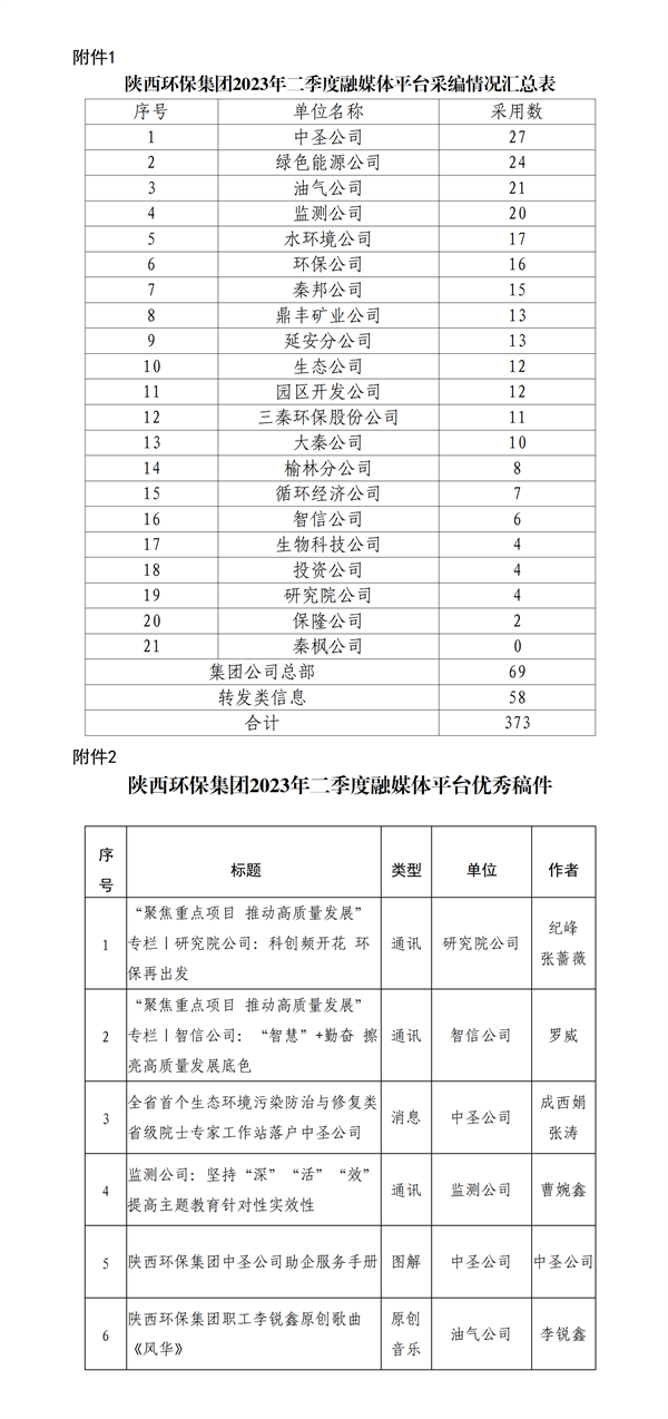 為進(jìn)一步提高集團(tuán)融媒體平臺稿件質(zhì)量,有效發(fā)揮融媒體平臺服務(wù)企業(yè)高質(zhì)量發(fā)展的作用,傳播時代精神,講好集團(tuán)故事,現(xiàn)將2023年二季度集團(tuán)公司融媒體平臺稿件采用及優(yōu)秀稿件評選情況通報如下: