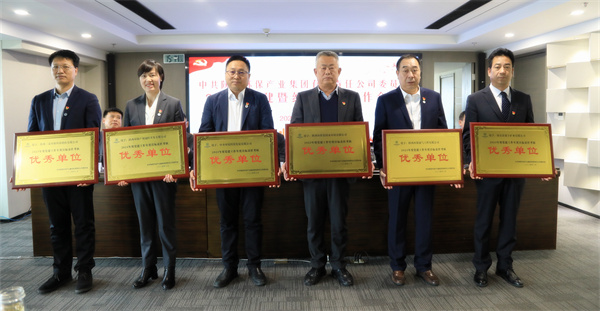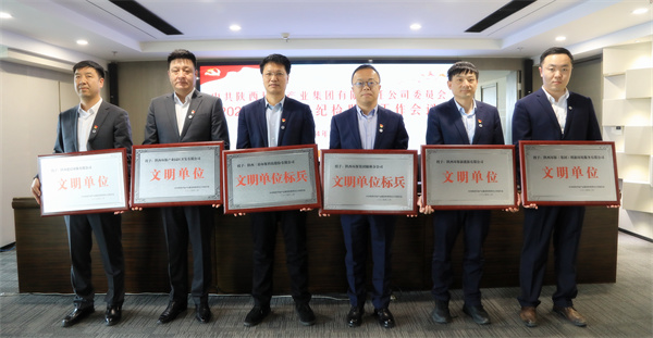 會議對榮獲2023年度黨建工作年度目標責任考核“優秀單位”的中圣公司、水環境公司、園區開發公司、油氣公司、三秦環保股份公司、鼎豐礦業公司和榮獲陜西環保集團“文明單位(標兵)”的:三秦環保股份公司、榆林分公司、園區開發公司、新能源公司、德啟公司、朗新公司,榮獲2023年度“學習強國”平臺“學習標兵”稱號的延安分公司、水環境公司、油氣公司、榆林分公司、鼎豐礦業公司、生物科技公司,榮獲2023年度融媒體平臺“宣傳標兵”稱號的:中圣公司、油氣公司、水環境公司、綠色能源公司、監測公司、鼎豐礦業公司進行了表彰。